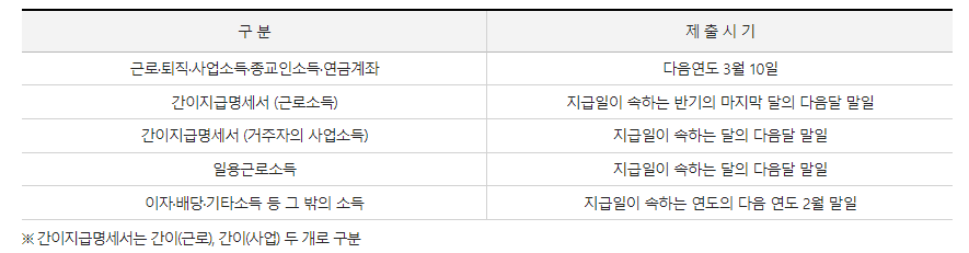 현재(2022년)는 아래 표와 같이 제출시기를 기억해주시면 됩니다.