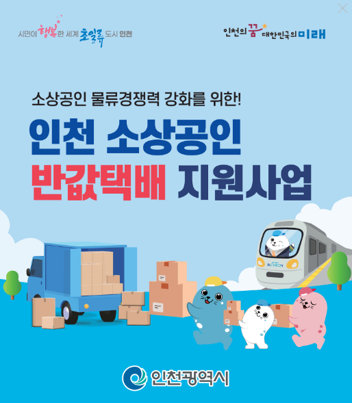 인천광역시는 택배배송사 (주)한진 및 (주)브이투자브이와 함께 인천 소상상공인의 물류 경쟁력 강화를 위해 전국 최초로 인천 소상공인 반값택배 지원사업을 추진하고 있습니다. 인천 소상공인 반값택배 지원사업이 진행되게 된 배경과 지원대상, 신청방법 및 이용방법을 알아보도록 하겠습니다.